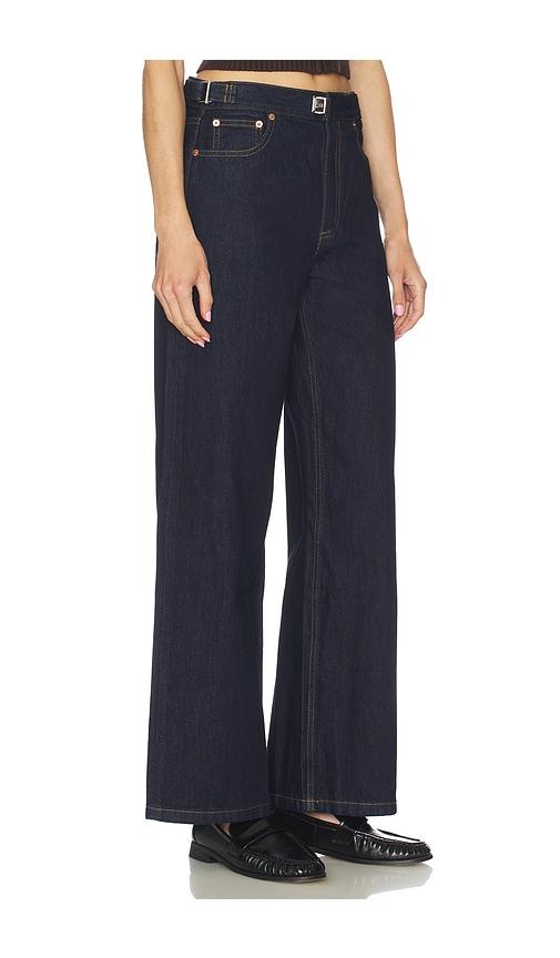STILL HERE BUCKLE WIDE LEG JEANS IN BLUE.