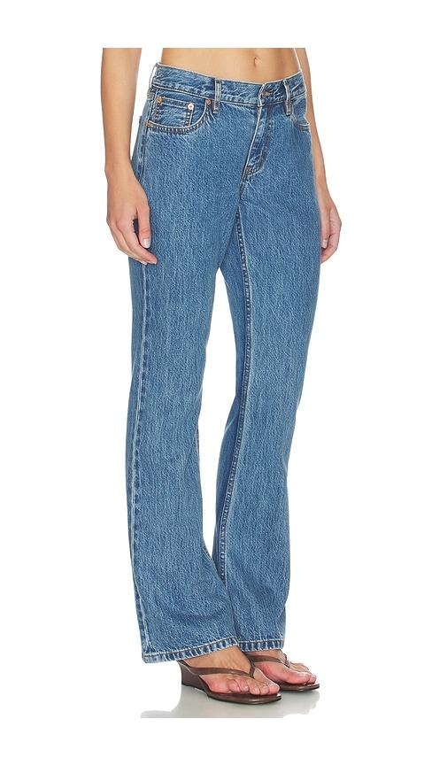 STILL HERE TOMORROW LOW RISE SKINNY BOOTCUT JEANS IN BLUE.