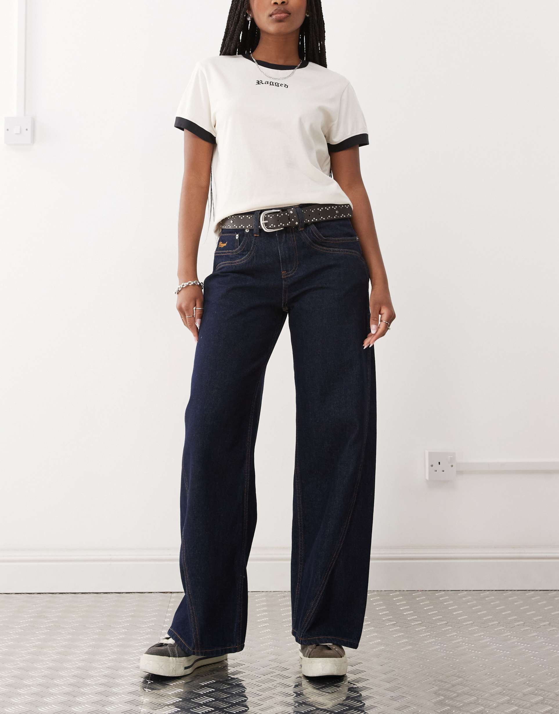 Embrace a laid-back, bold aesthetic with The Ragged Priest's low-rise baggy jeans in a rich dark blue indigo wash. Crafted from 100% cotton non-stretch denim, these full-length jeans offer a relaxed, loose fit that effortlessly blends comfort and street-style edge. Featuring a classic belted waistband with functional belt loops and five practical pockets, they provide both style and utility. The clean hemline and washed fabric treatment add to their vintage-inspired, grunge appeal. Perfect for casual days and urban adventures, these jeans redefine everyday comfort with an edgy, fashion-forward twist.