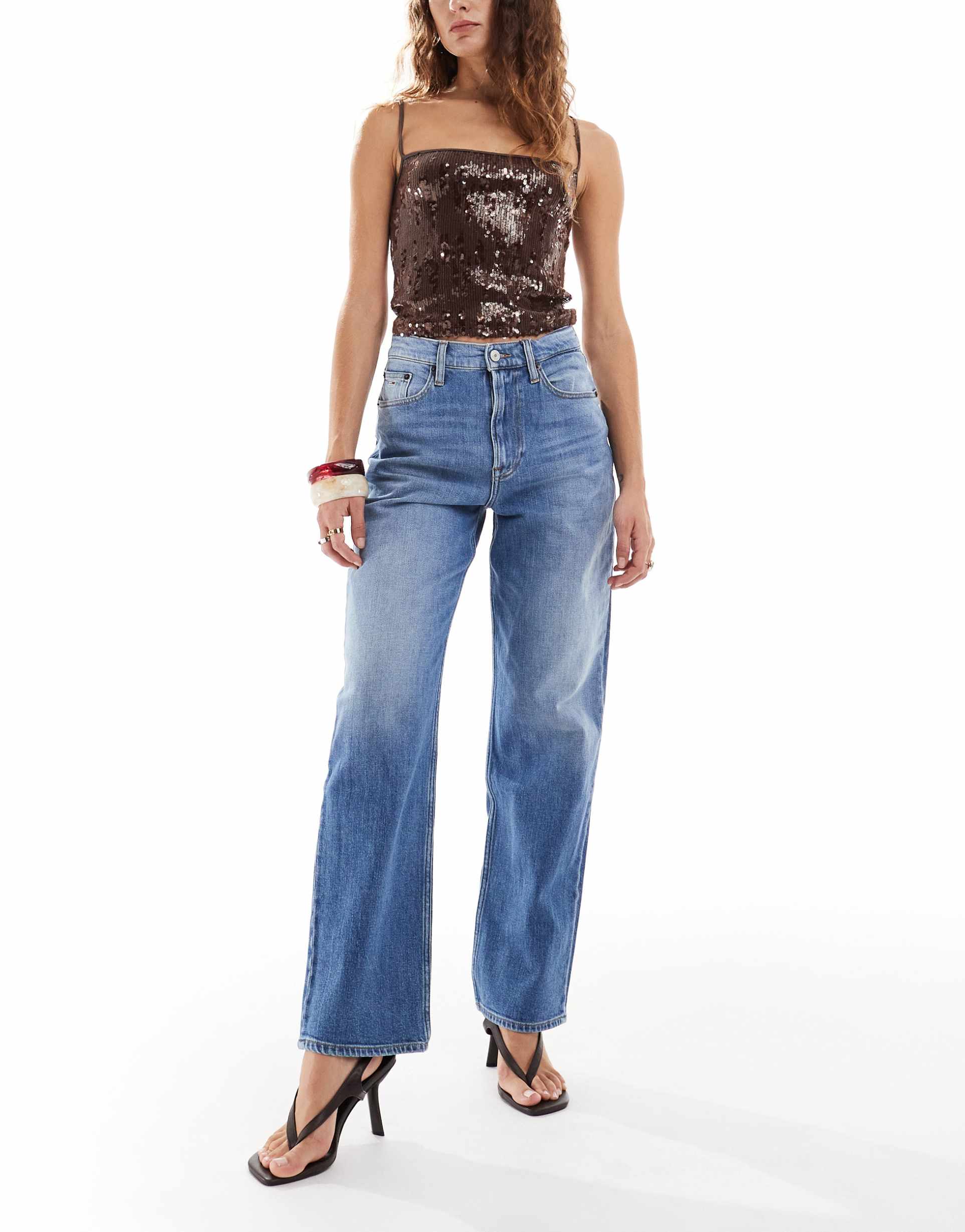 TOMMY JEANS LAYLA SLIM STRAIGHT JEANS IN MID WASH