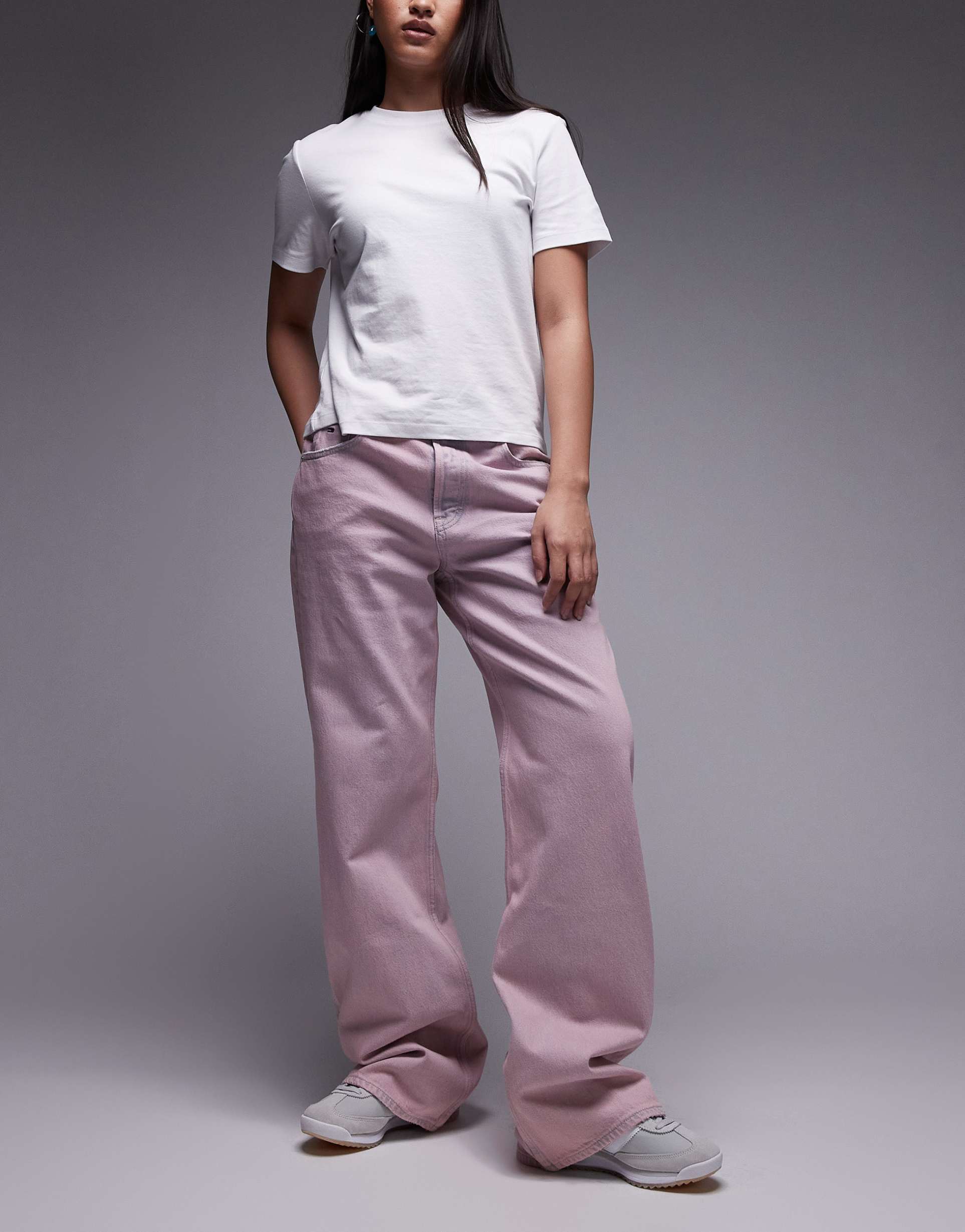 TOMMY JEANS MIA MID RISE RELAXED STRAIGHT LEG JEANS IN PINK DENIM