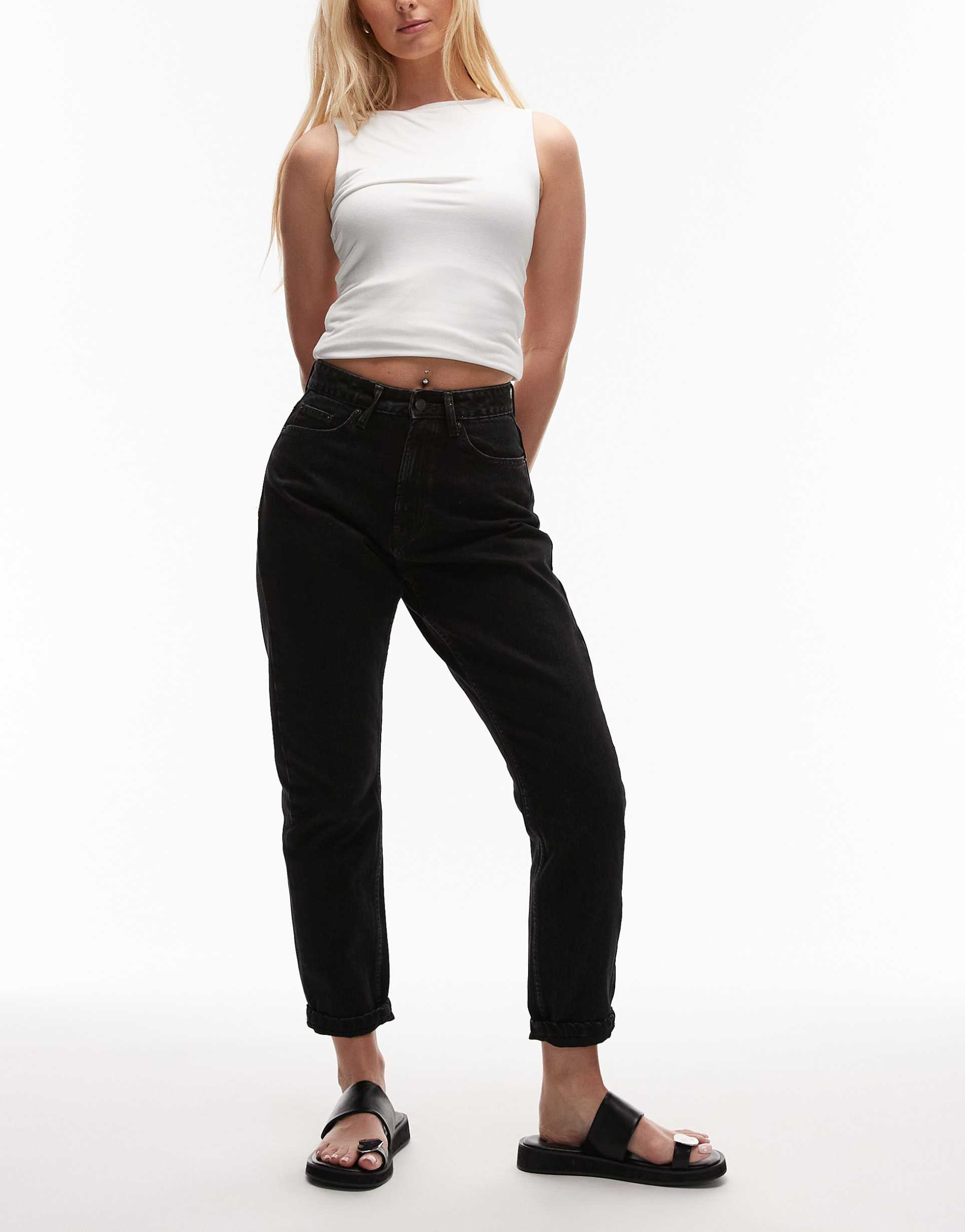 Embrace timeless style and comfort with these Topshop Hourglass Original high-rise mom jeans in a sleek washed black finish. Crafted from 100% cotton non-stretch denim, they offer a relaxed yet flattering fit with extra room around the hips, perfectly embodying the iconic mom jeans silhouette. Featuring a flat-front waistband with belt loops, zip fly, and classic five-pocket design, these ankle-length jeans are finished with cuffed hems for a casual edge. Ideal for everyday wear across all seasons, these jeans effortlessly blend vintage charm with minimalist appeal, making them a versatile staple for your wardrobe.