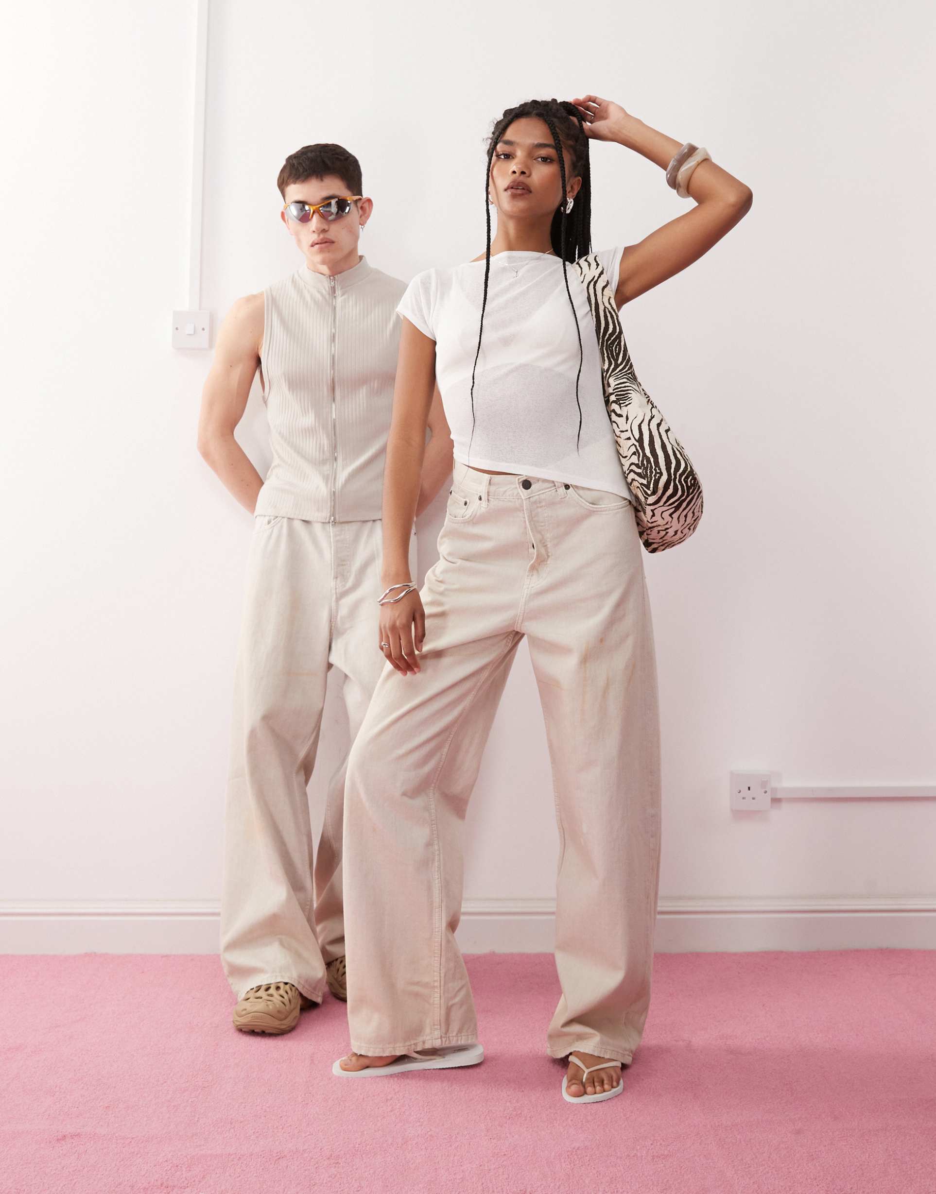 WEEKDAY ASTRO UNISEX LOW RISE BAGGY FIT JEANS IN DIRTY BEIGE WASH