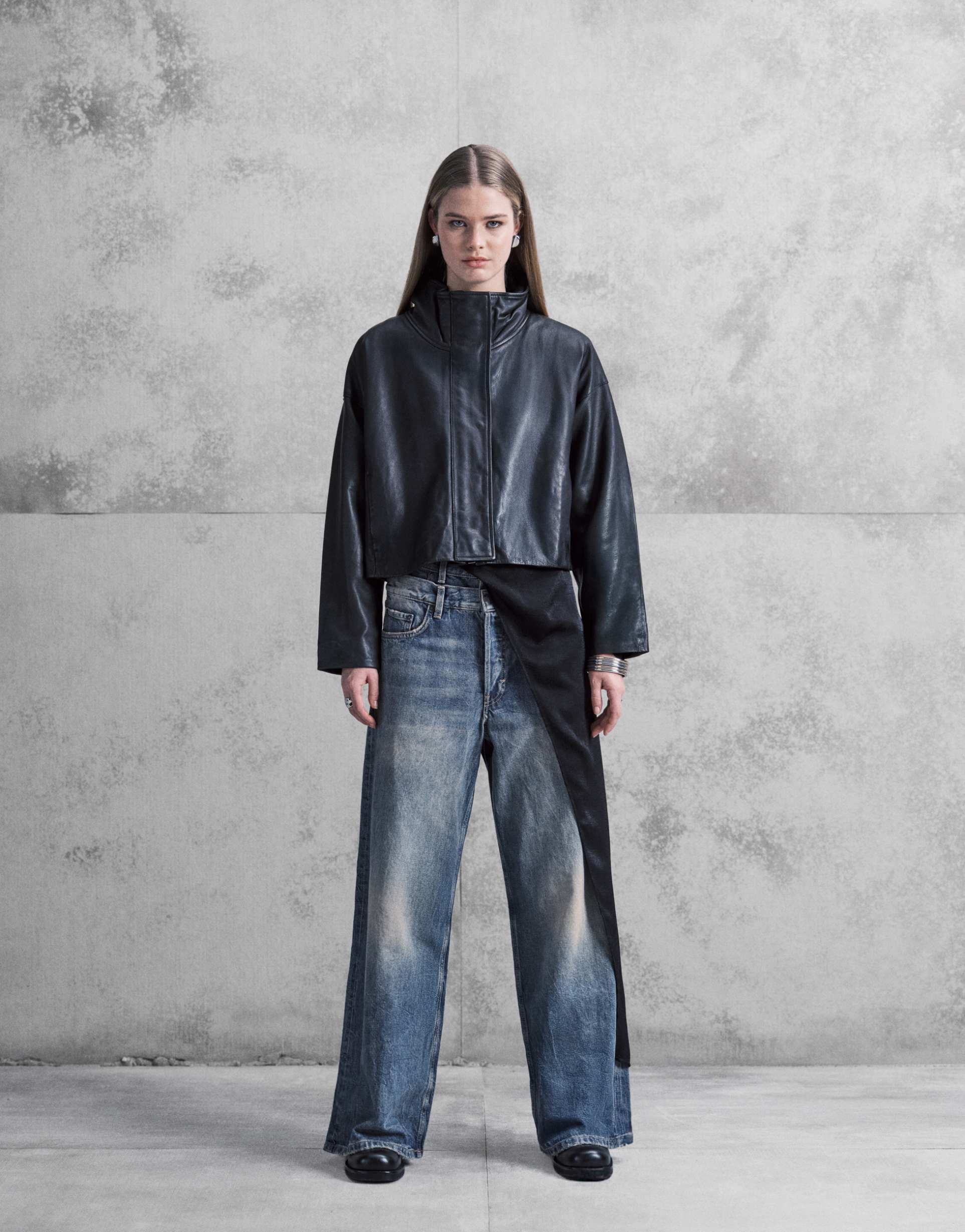 WEEKDAY UNISEX LOOSE FIT WIDE LEG BAGGY JEANS WITH DOUBLE WAISTBAND DETAILING IN FADED BLUE WASH