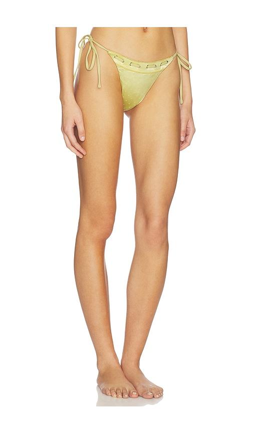 WITH JEAN JUNI EYELET LACE UP BIKINI BOTTOM IN YELLOW.