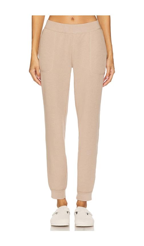 EBERJEY REVERSIBLE PLUSH JOGGER IN BEIGE.