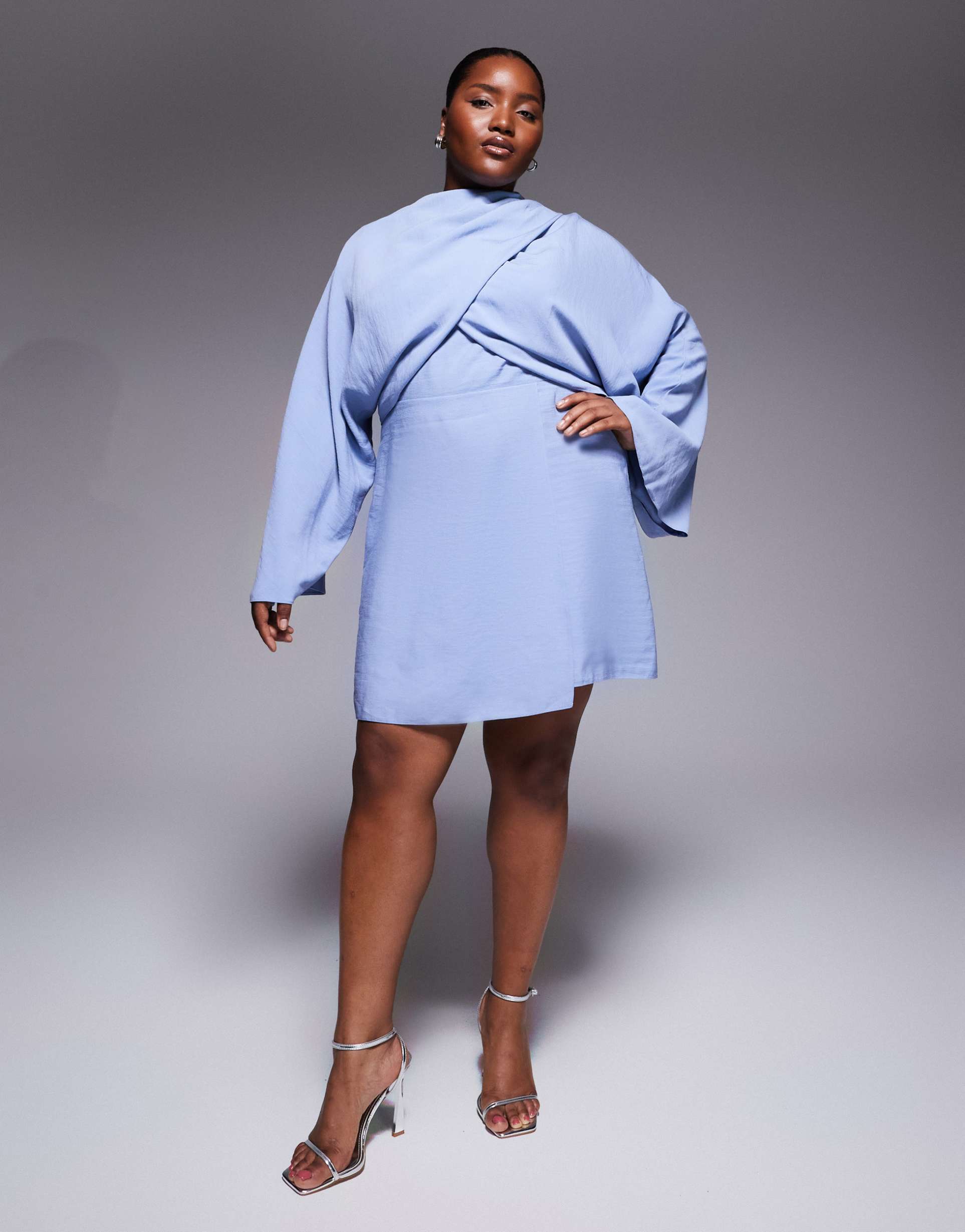 ASOS DESIGN CURVE BATWING WRAP HIGH NECK ROMPER IN DUSKY BLUE