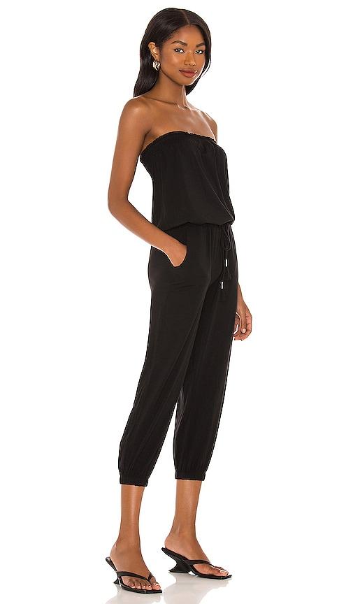 BOBI JERSEY STRAPLESS JUMPSUIT IN BLACK.