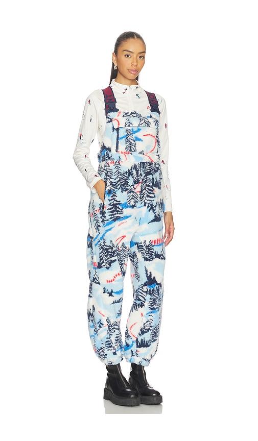 FREE PEOPLE X FP MOVEMENT PRINTED HIT THE SLOPES SALOPETTE JUMPSUIT IN BLUE,WHITE.
