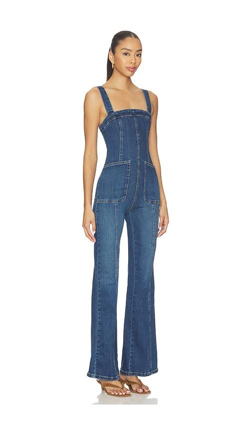 FREE PEOPLE X WE THE FREE SUNS OUT BOOTCUT JUMPSUIT IN BLUE.