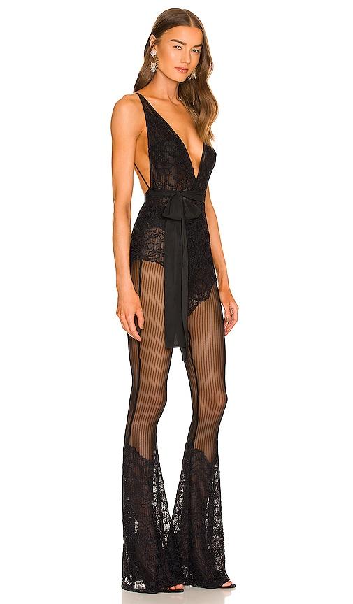 MICHAEL COSTELLO X REVOLVE ROLAND JUMPSUIT IN BLACK.