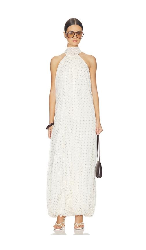 ROTATE CHIFFON BALLOON JUMPSUIT IN IVORY.