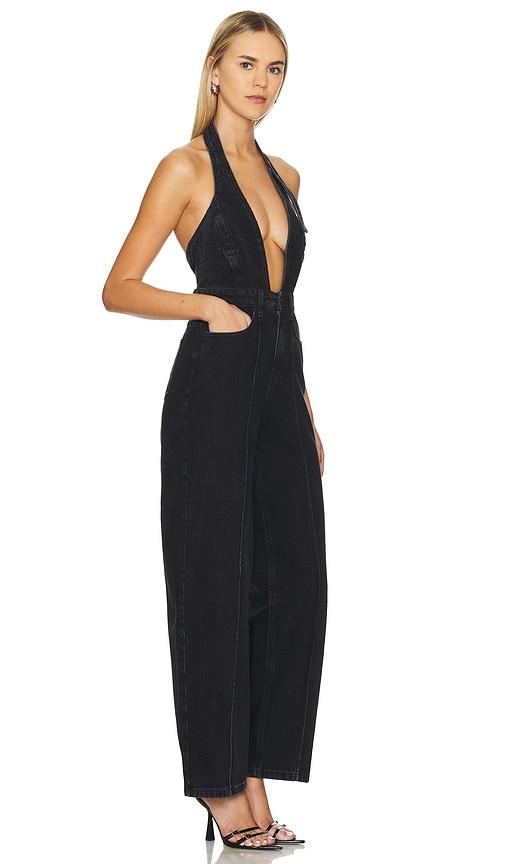 RTA SADIE DENIM JUMPSUIT IN BLACK.