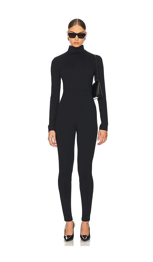 SUSANA MONACO MOCK NECK LONG SLEEVE JUMPSUIT IN BLACK.