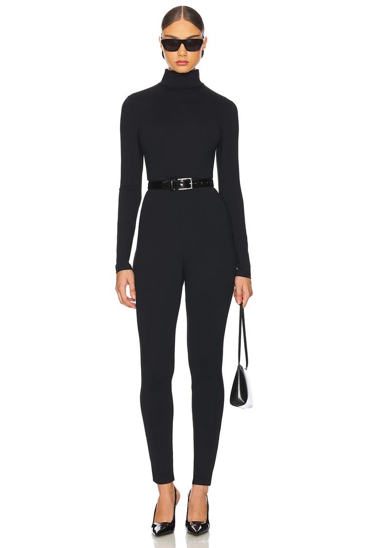black mock neck jumpsuit