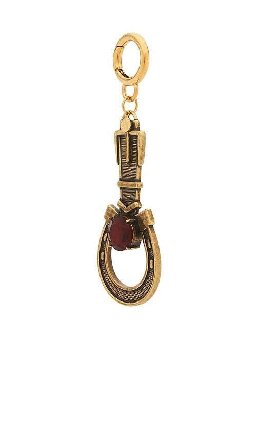 PETIT MOMENTS HORSESHOE KEYCHAIN IN METALLIC GOLD.