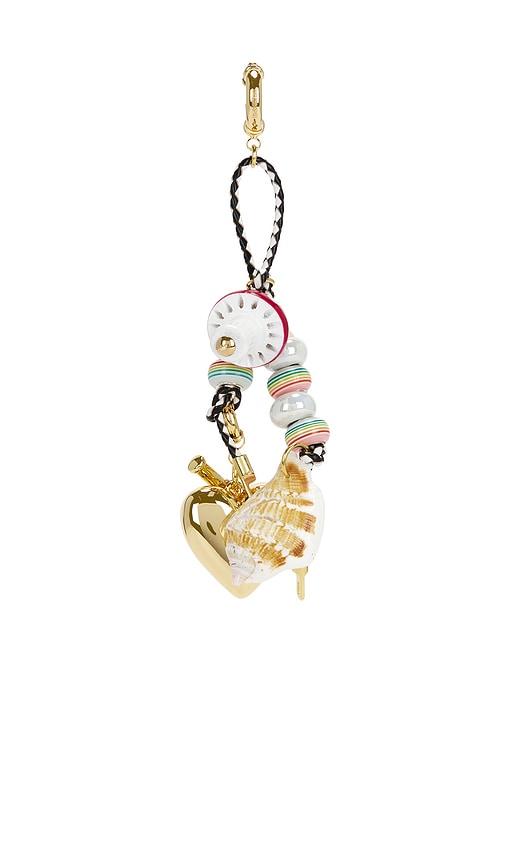 TIMELESS PEARLY CHARMS ROPE KEYCHAIN IN METALLIC GOLD.