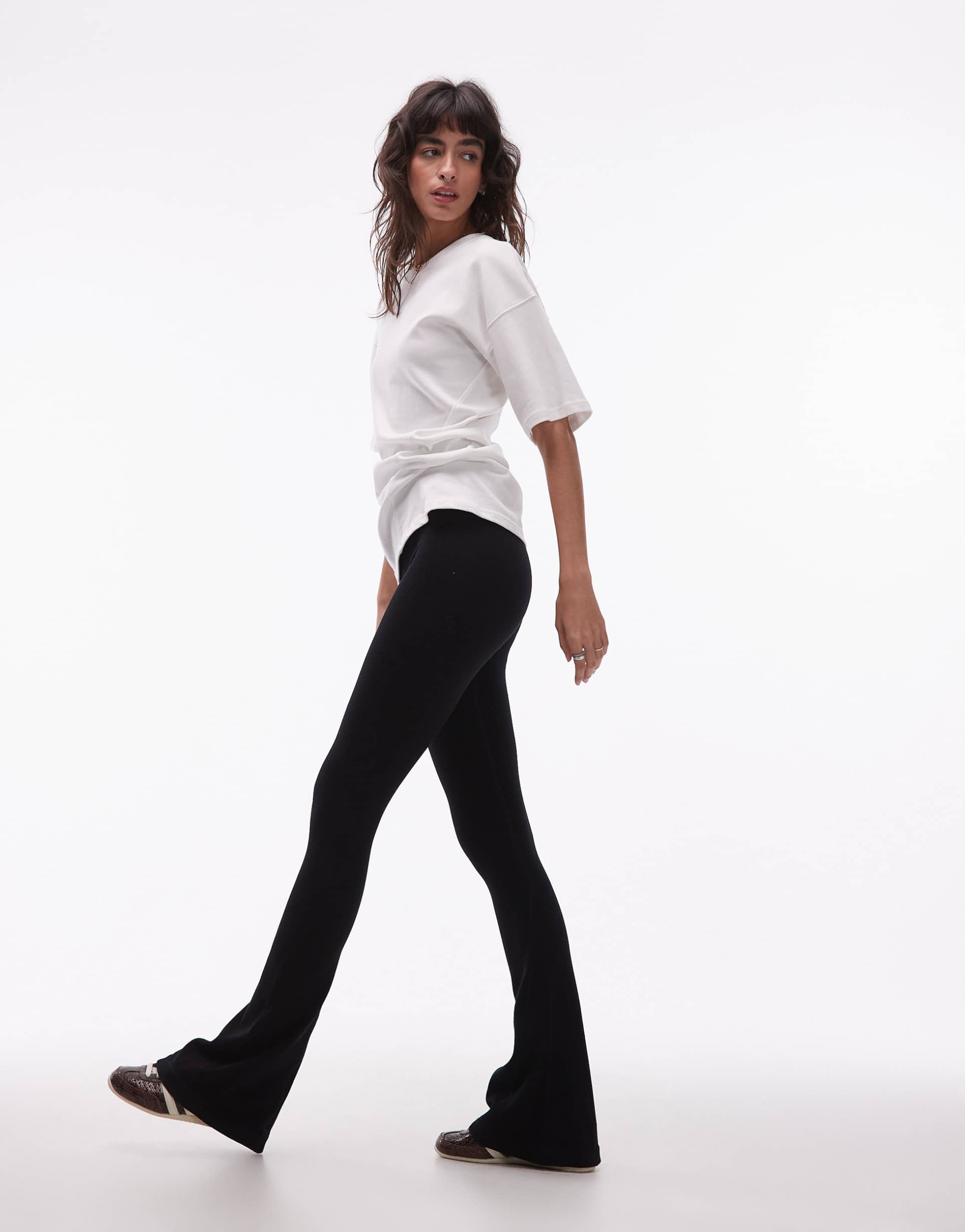 ASOS DESIGN SEAMLESS RIBBED FLARE LEGGINGS IN BLACK