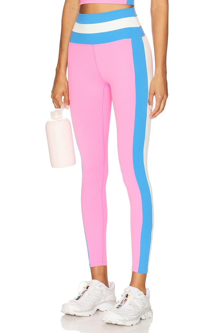 Bring vibrant energy to your activewear collection with these Mariella Bikini Leggings by Beach Riot. Crafted from a midweight, stretchable nylon and lycra blend, these full-length leggings offer a sleek fitted silhouette with a flattering mid-rise and a clean flat-front waistband. The playful color-blocked design in soft pink, blue, and white adds a modern sporty chic vibe perfect for workout sessions or athleisure styling. Easy pull-on closure and machine-washable fabric make them practical for everyday wear, whether hitting the gym or running errands. Elevate your casual look with comfort and bold color contrast that stands out.