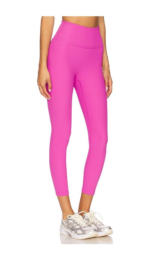 BEYOND YOGA IMPULSE RIBBED HIGH WAISTED MIDI LEGGING IN FUCHSIA.