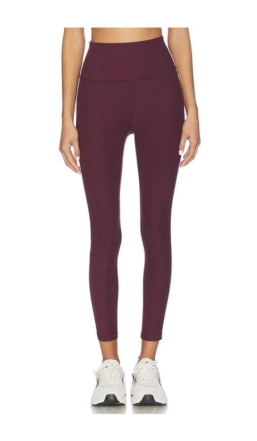 BEYOND YOGA SPACEDYE READY MIDI LEGGING IN BURGUNDY.