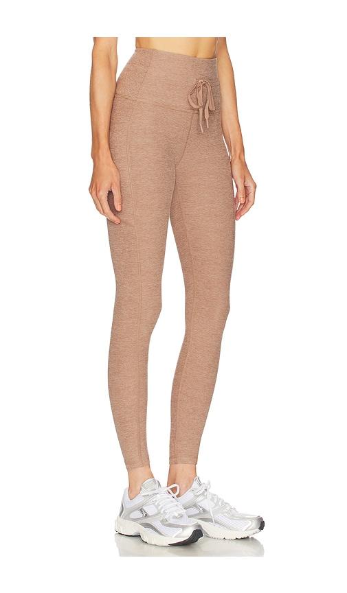 BEYOND YOGA SPACEDYE THE GO POCKET MIDI LEGGINGS IN NEUTRAL.
