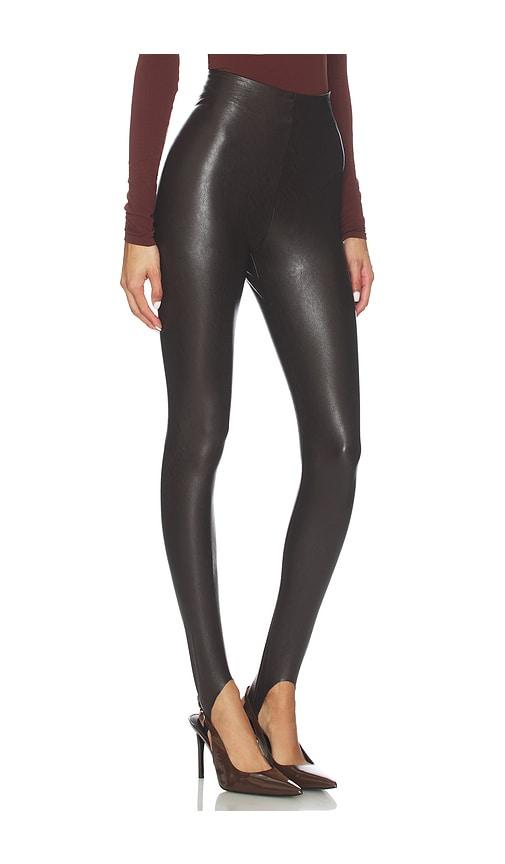 COMMANDO FAUX LEATHER STIRRUP LEGGING IN BROWN.