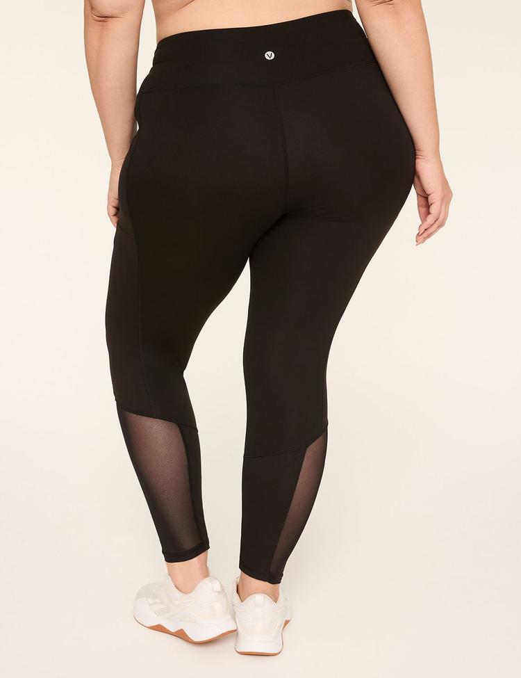 Embrace confidence and comfort with these plus size LIVI Soft High-Rise Mesh-Detail 7/8 Leggings. Crafted from a buttery-soft blend of recycled polyester and spandex, these leggings offer a second-skin fit that contours from hip to just above the ankle. The high-rise flat-front waistband provides extra tummy coverage and stays securely in place without digging in. Stylish mesh panels along the side legs enhance breathability and add a modern sporty touch, while practical thigh pockets keep essentials close during workouts or casual outings. Perfect for athleisure, workouts, or relaxed everyday wear, these leggings combine performance and sleek style seamlessly.