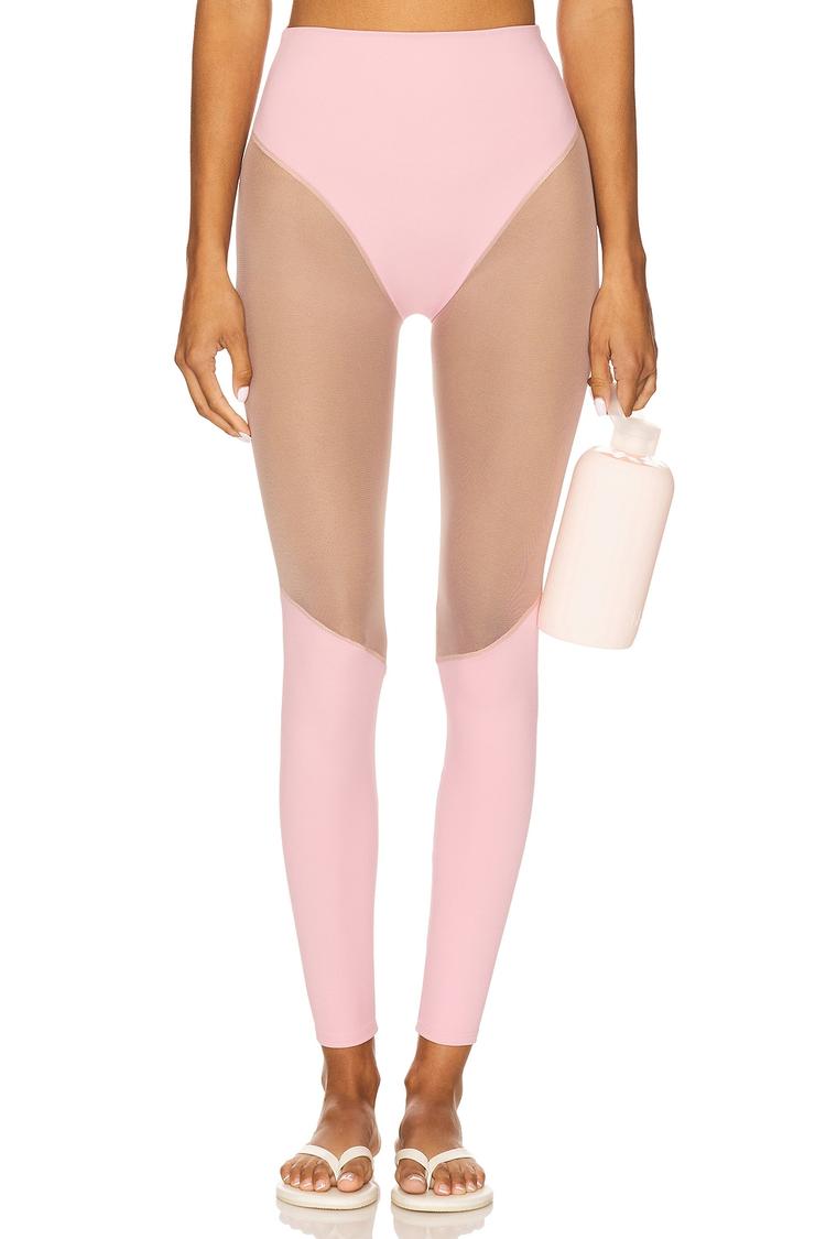 Infuse your activewear collection with the Cindy Mesh Legging, designed to blend sleek style and breathable comfort. Crafted from a light-weight, stretchable polyamide-elastane blend, these leggings feature high-rise flat-front waistband for a flattering fit and full-length silhouette that sculpts your legs. The standout design element is the chic mesh paneling along the legs, adding modern sporty flair and enhanced ventilation. Perfect for athleisure days, casual outings, or energizing workouts, these leggings combine functionality with a soft matte light pink and beige color-block aesthetic. Elevate your movement with this versatile and fashion-forward essential.