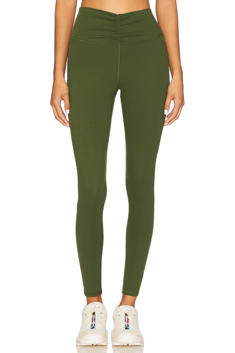 ruched waistband leggings for flattering fit