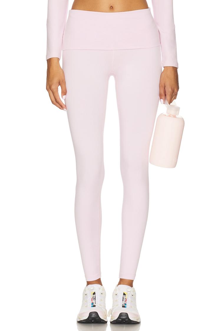 Experience the perfect blend of comfort and sleek style with the Ballet Fold Over Legging by Year Of Ours. Crafted from a light pink, stretchable polyester-spandex blend, these full-length leggings feature a high-rise fold-over waistband that enhances fit and comfort. The fitted silhouette contours the body for a streamlined look, ideal for athleisure, workouts, or casual everyday wear. The clean hemline and pull-on design add to the effortless appeal, making these leggings a versatile staple for all seasons. Whether you're hitting the gym or running errands, these leggings offer breathable, lightweight ease with a modern minimalist edge.