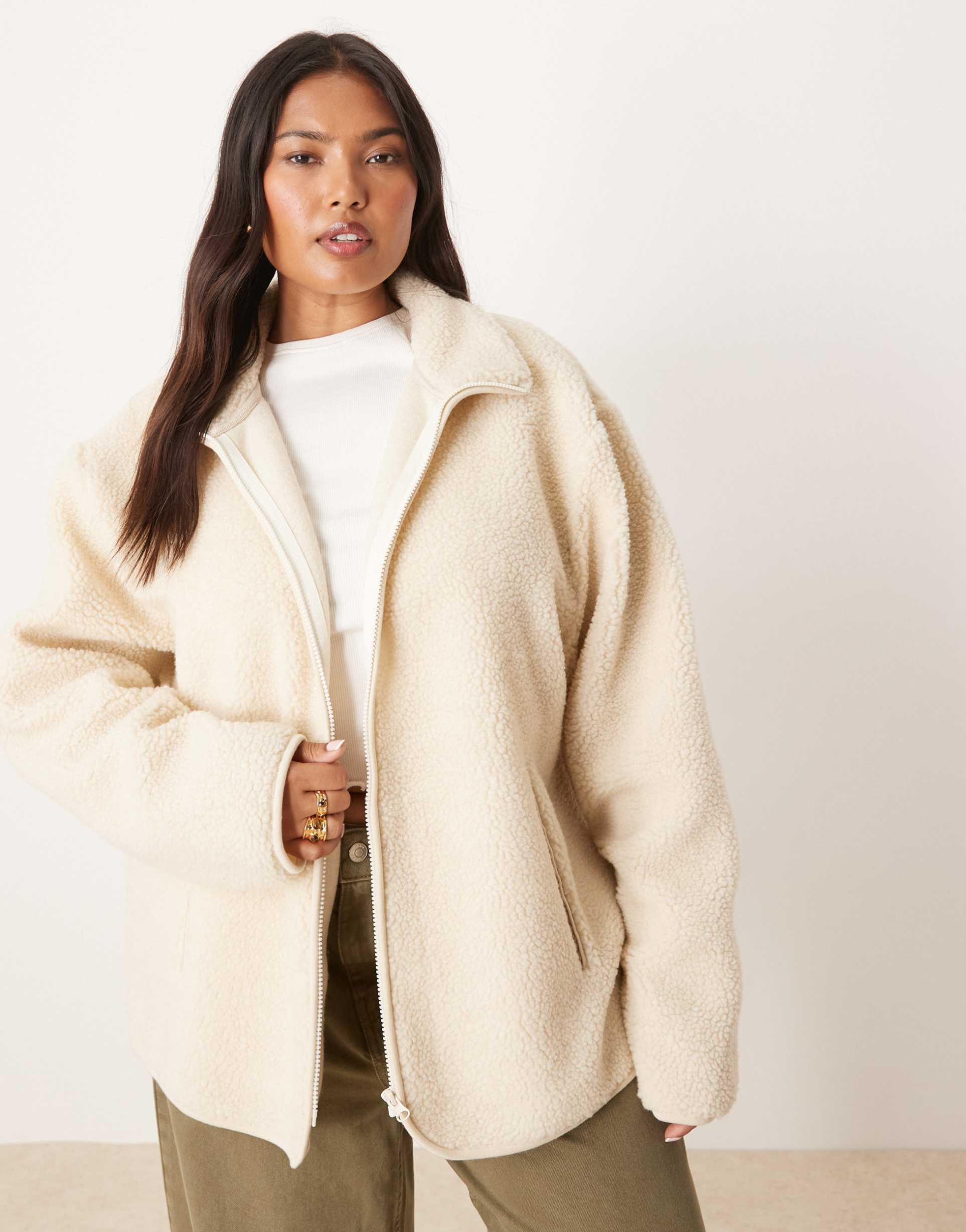 ASOS DESIGN CURVE BORG ZIP UP FLEECE IN CREAM