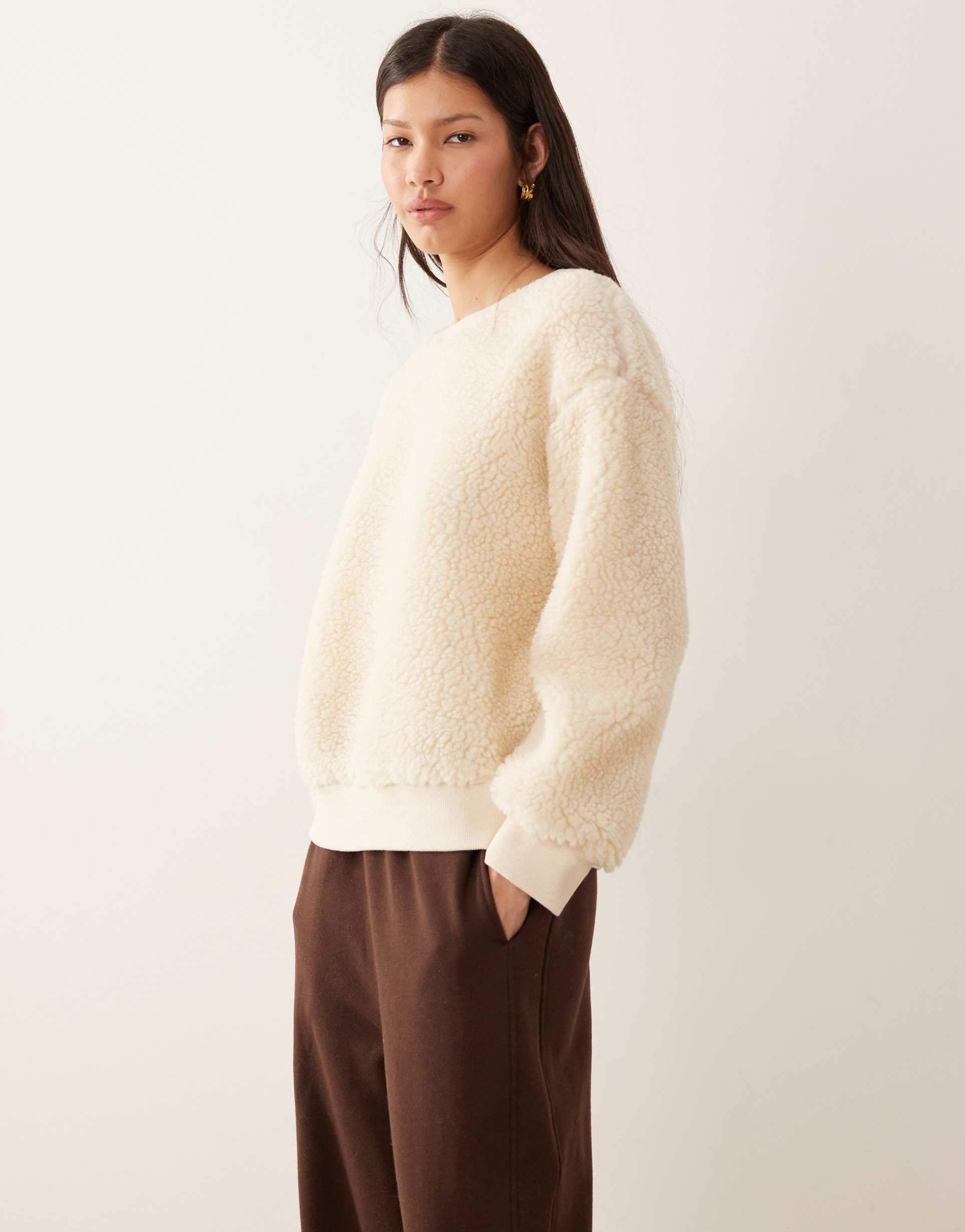 ASOS DESIGN OVERSIZED TEDDY SWEATER IN CREAM