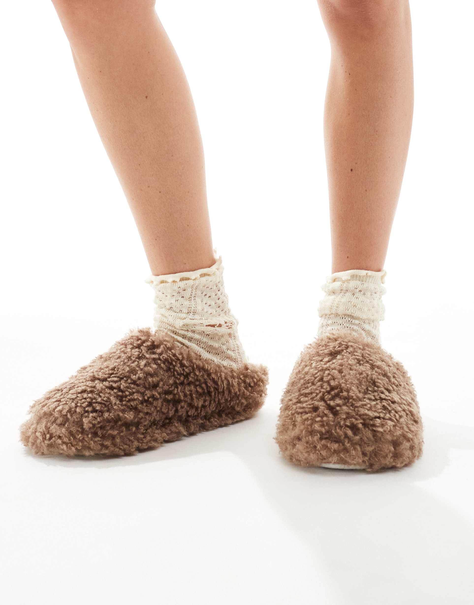 LOUNGEABLE COZY BORG MULE SLIPPERS IN MOCHA
