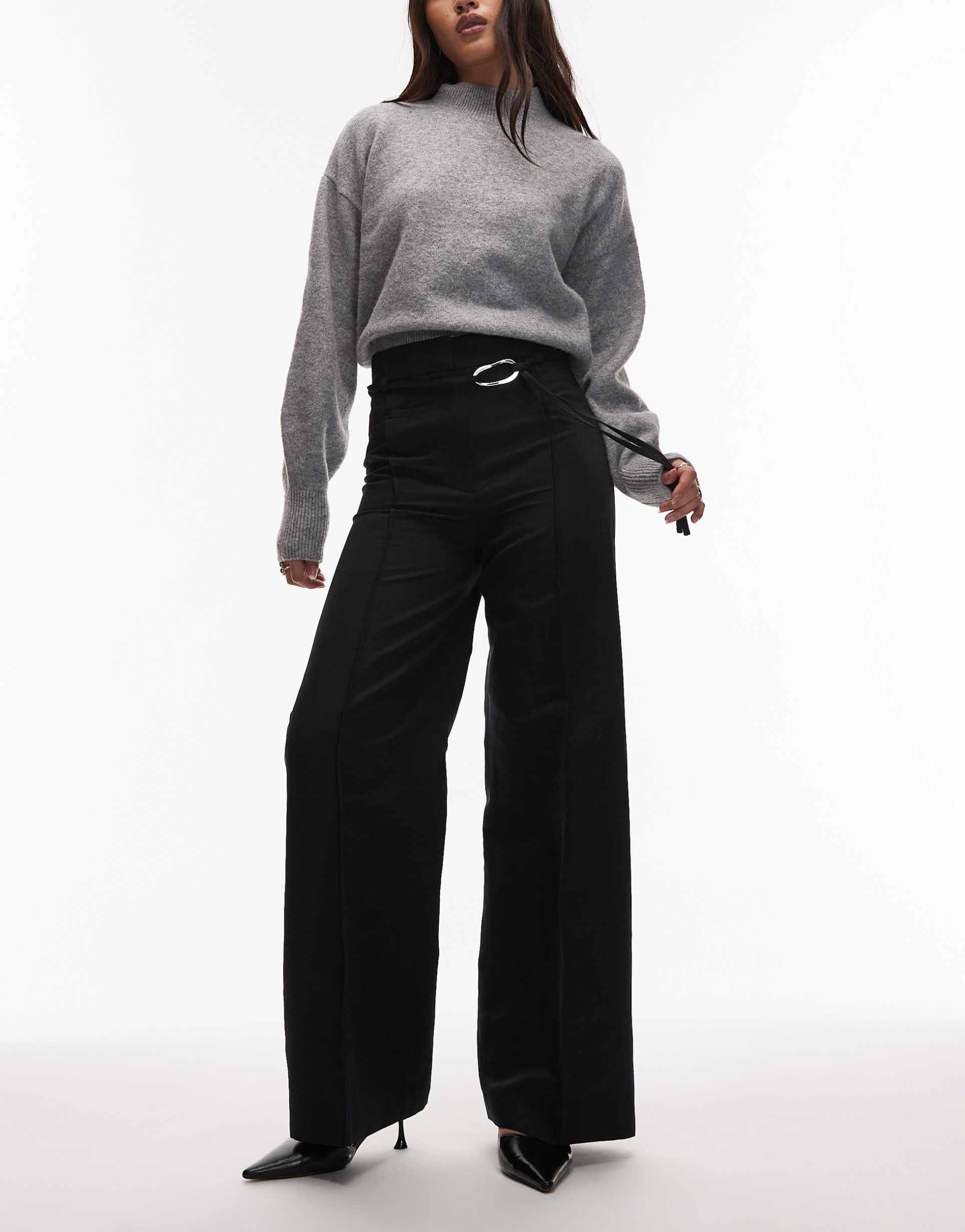 & OTHER STORIES TIE BELT FLARED TAILORED PANTS IN BLACK