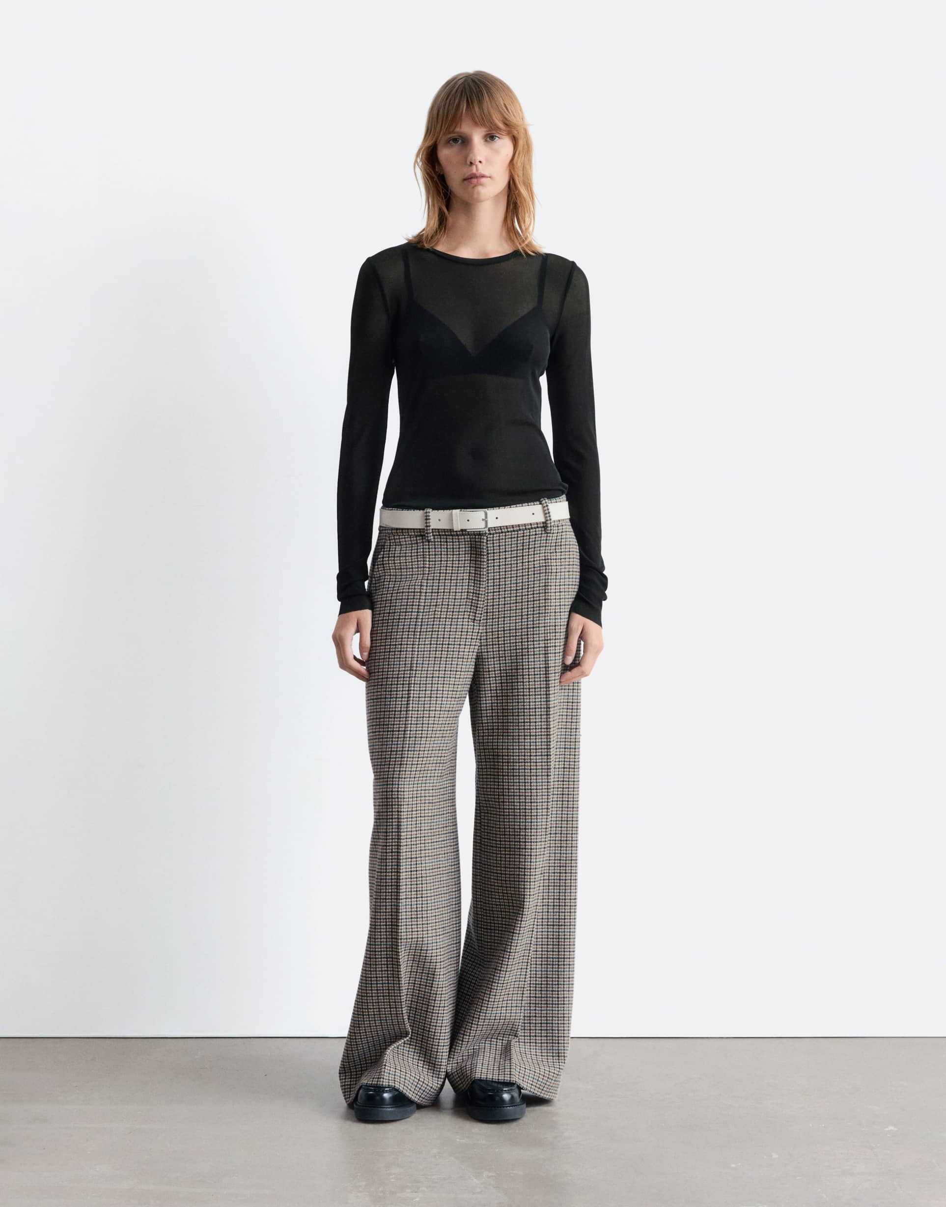 & OTHER STORIES WOOL TAILORED WIDE LEG PANTS DARK BEIGE CHECK - PART OF A SET