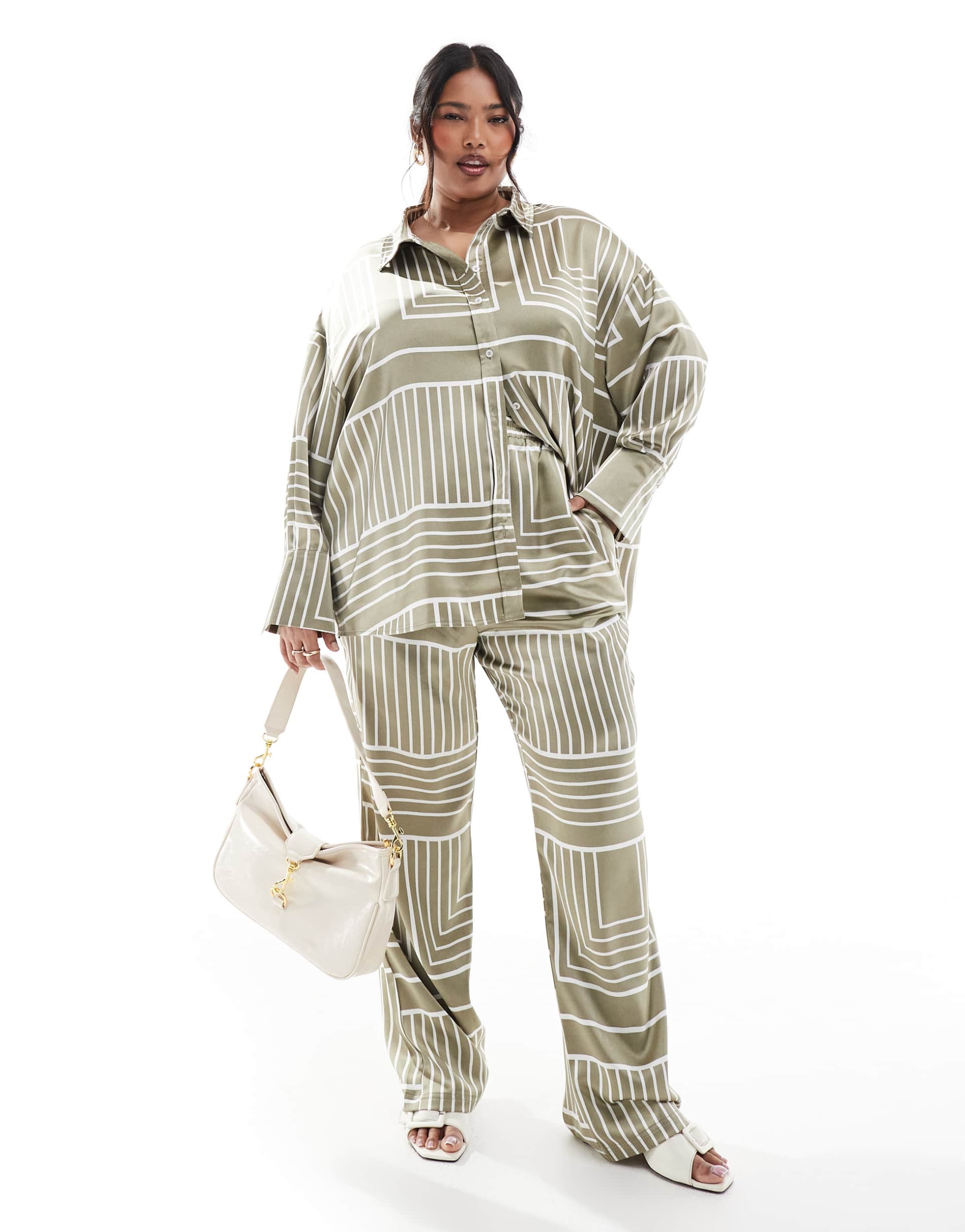 4TH & RECKLESS PLUS SATIN WIDE LEG PANTS IN SAGE TILE PRINT - PART OF A SET