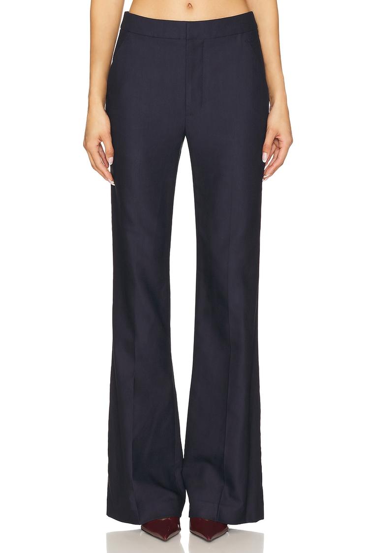 Redefine professional chic with the A.L.C. Sophie II Pant in a rich navy. Cut in a fluid, full-length wide-leg silhouette from a refined viscose-cotton blend with a touch of elastane, these pants drape with quiet confidence. The mid-rise waistband sits cleanly under a tailored blouse, closed by a zip fly with a hook-and-bar for a seamless front. Side and back pockets promise practical polish, while the soft-weight fabric moves from desk to after-hours with ease. Minimal yet statement-making, these pants anchor a modern workwear edit with timeless versatility and an effortlessly sophisticated vibe.