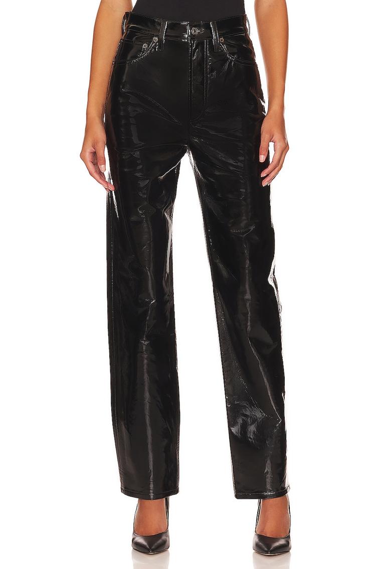 Embrace bold polish and vintage edge with these AGOLDE Recycled Leather 90's Pinch Waist pants. A glossy, patent leather silhouette sits high at the waist and tapers through a slim-straight leg, narrowing from knee to ankle for a clean, statement-making line. Crafted from a 50% recycled leather blend with polyurethane, viscose and polyester, they pair a luxe, eco-conscious vibe with a classic 5-pocket design and a zip-fly with button closure. Dress them up with a tonal bodysuit and heels for evening, or pair with knit boots for urban-cool everyday drama. A standout staple that redefines 90s chic.