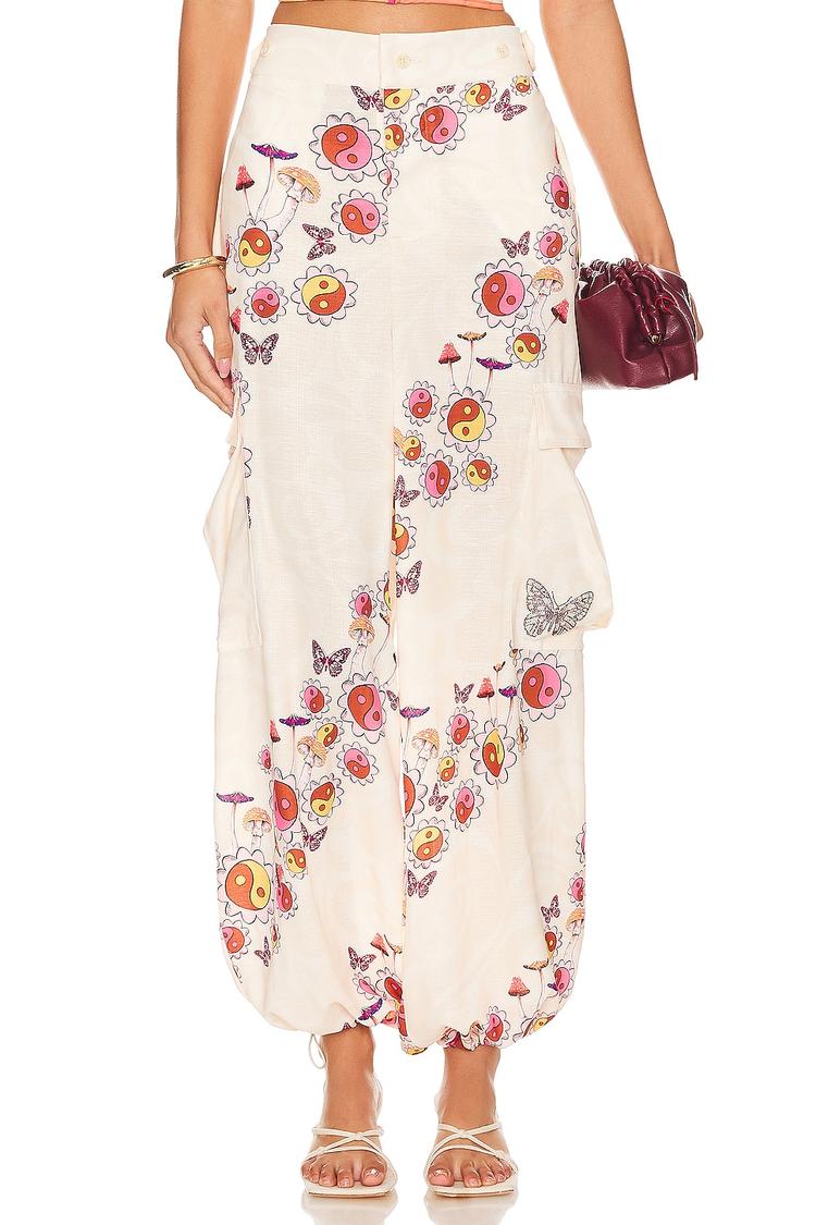 Effortlessly romantic and ready for sun-soaked escapes, these x REVOLVE Maicy Cargo Pants from Agua by Agua Bendita blend boho charm with utilitarian detail. Crafted in lightweight polyester, the off-white canvas blooms with a delicate floral print and butterfly motifs along the legs. A practical cargo silhouette sits relaxed at the hips, with an elastic back waistband, zip fly with button closure, and adjustable drawstring at the leg openings for a customizable taper. Pockets at the sides complete the look, making them perfect for resort days, casual lunches, and weekend wanderings in style.