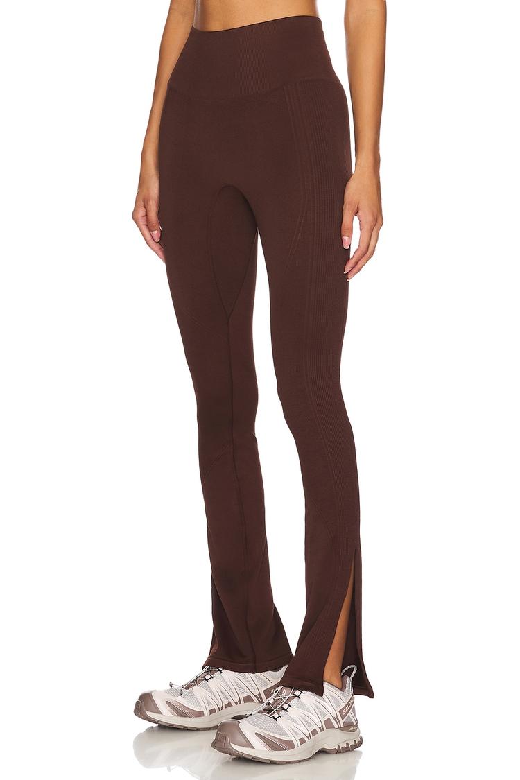 Elevate your studio-to-street look with the Barre Flare Legging by Alala. Crafted in rib jersey with a premium nylon-elastane blend, the pull-on silhouette hugs and flexes with every move. A high-rise, elasticated waistband anchors a sleek, full-length leg that flares softly from the knee into a chic vented hem, finished in a rich chocolate-brown. Perfect for barre class, gym sessions, or a casual day out, this versatile piece pairs with cropped tops, hoodies, or oversized knits for an effortlessly polished vibe. Designed for comfort, movement, and everyday confidence.