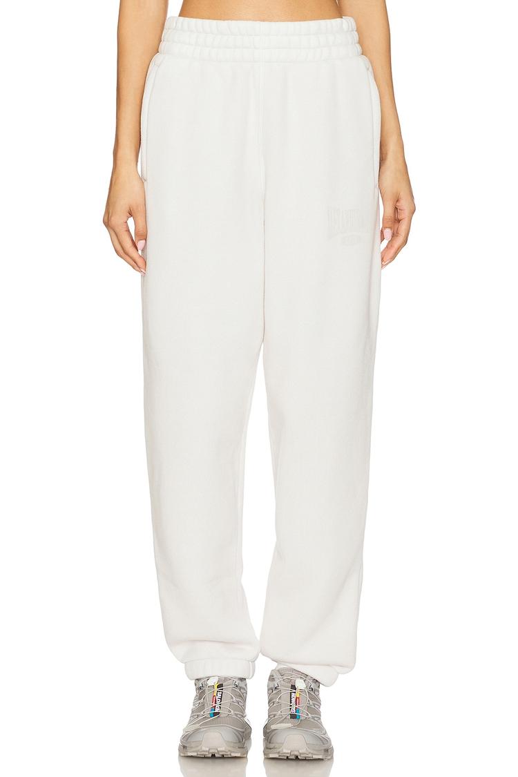 Effortless everyday luxury meets street-ready comfort in these all-white graphic sweatpants. Cut from heavyweight cotton-poly fleece, the pull-on pants sit at the waist with a soft elastic band and a relaxed, tapered leg that ends in a neat cuff. Side pockets and a faux-back welt pocket add practical ease, while the cozy interior keeps you warm from morning errands to lounge-worthy nights. Wear with a cropped tee or oversized hoodie for a pared-back, modern look—perfect for weekends, travel, or city strolls. Alexander Wang's sweatpant elevates a minimalist silhouette with luxe fabric for everyday polish.