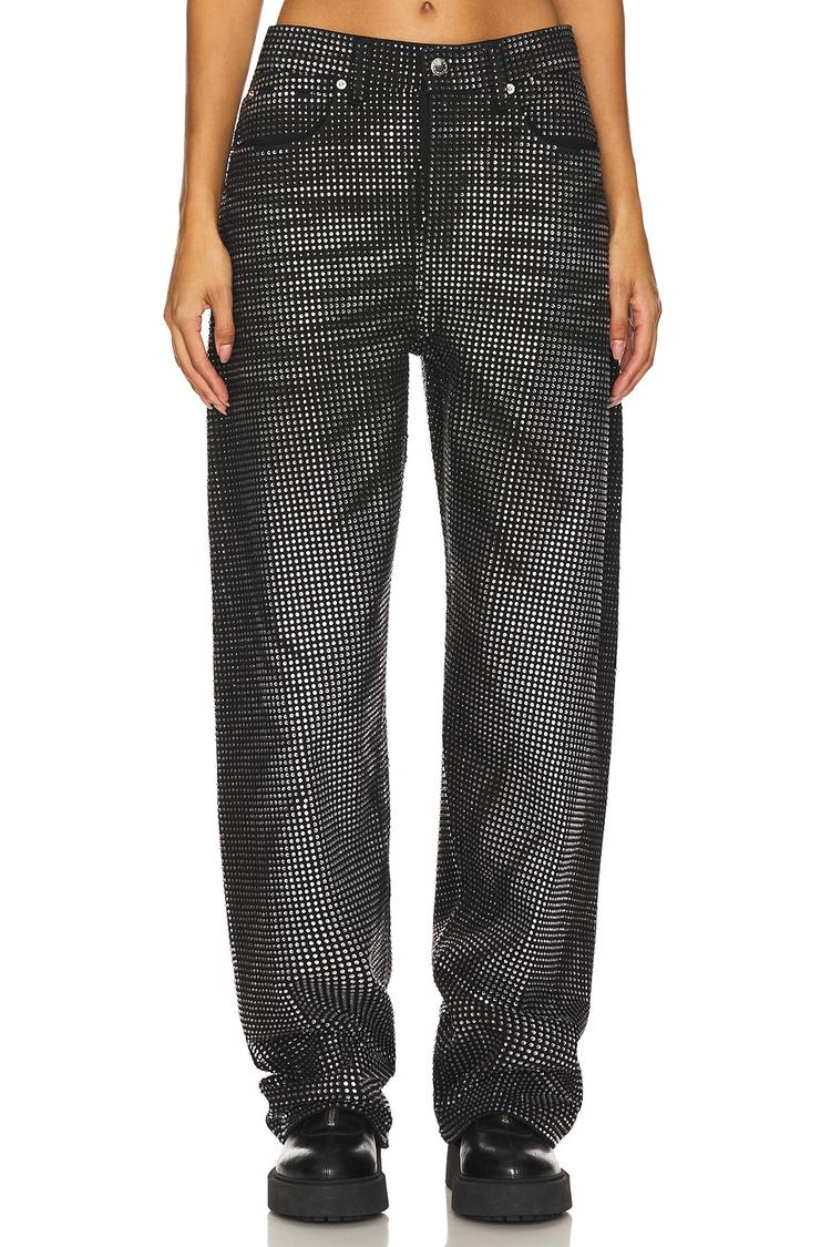 From the dance floor to day-to-day, this balloon jean makes a statement with all-over crystal embellishment on a distressed black denim. The rigid cotton denim lends a hefty, structured feel, while a relaxed, balloon silhouette tapers to a cuffed ankle for a modern, street-ready line. A classic five-pocket profile, zip fly with a button closure and belt-ready waist sits at mid rise. Wear with a rainproof jacket and metallic boots for a Night Out, or pair with a slinky knit and heeled sandals for after-dark events. The all-over sparkle elevates this denim into high-fashion territory.