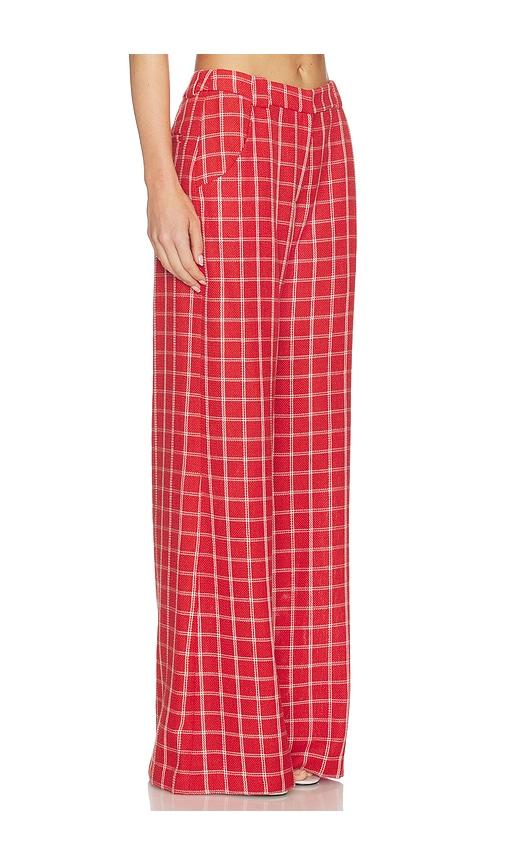 AMANDA UPRICHARD SADDLER PANTS IN RED.