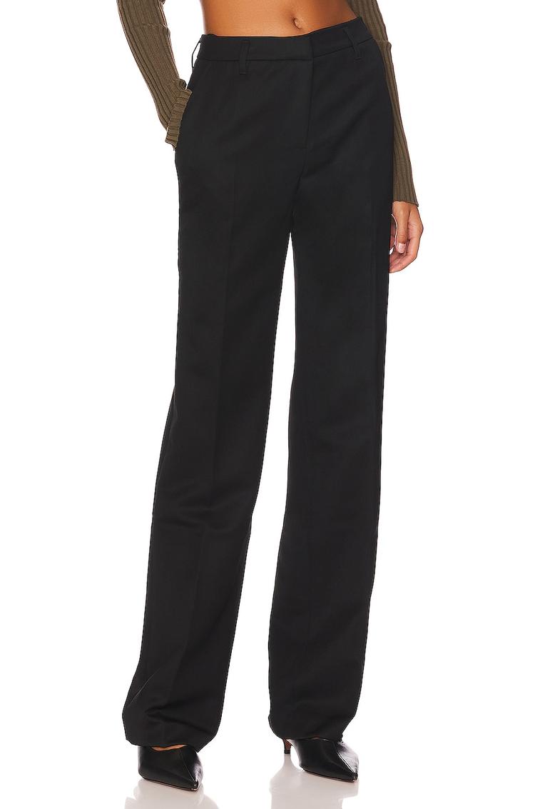 high-rise black pants with zip fly