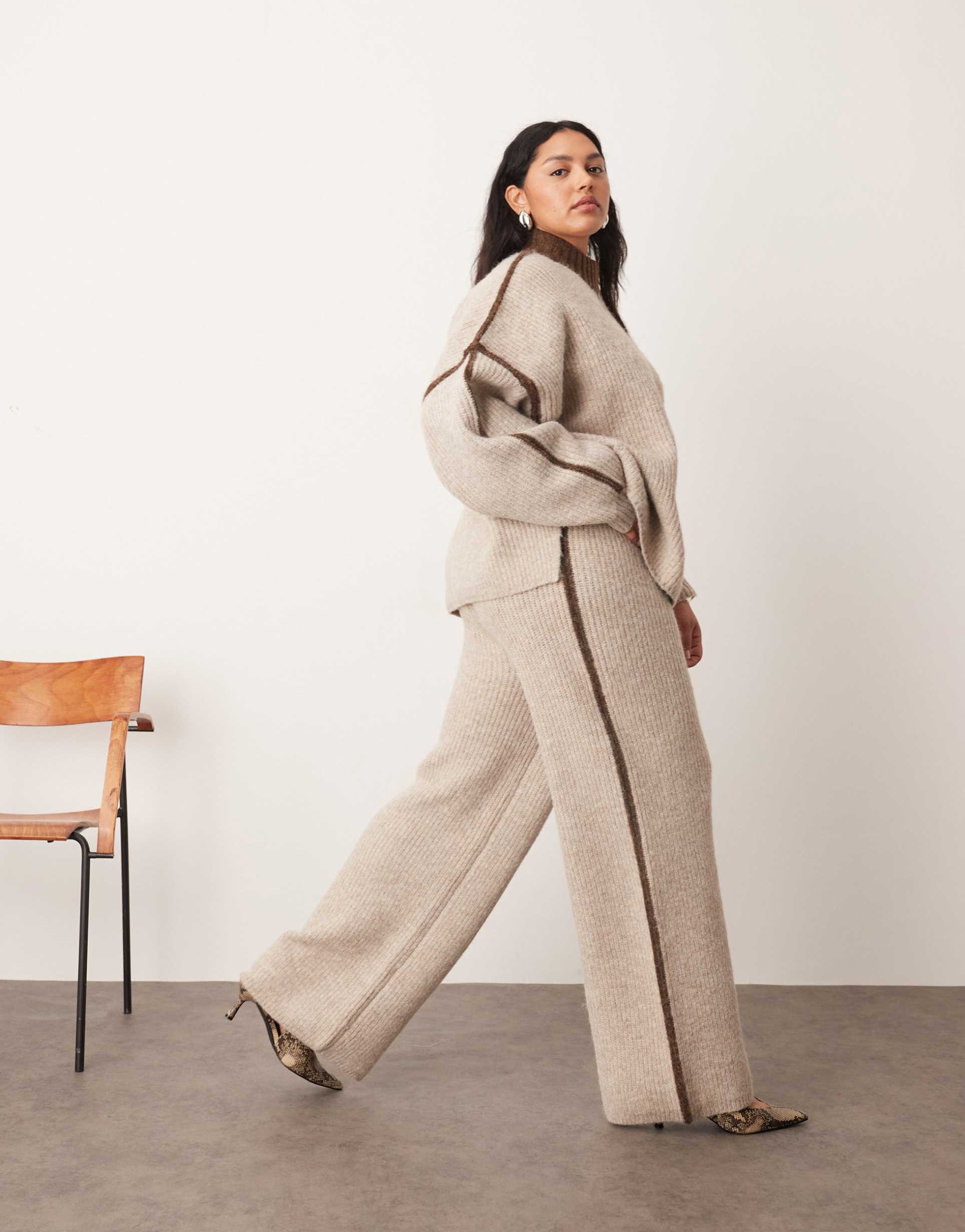ARRANGE CURVE THICK RIB KNIT CONTRAST COLOR PANTS IN OATMEAL AND CHOCOLATE - PART OF A SET