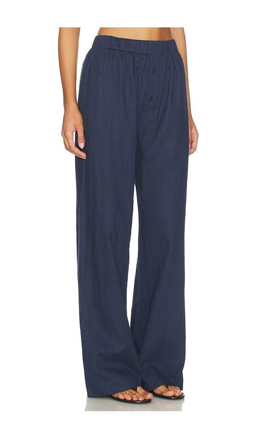 ARTLESS LINEN RELAXED PANTS IN NAVY.