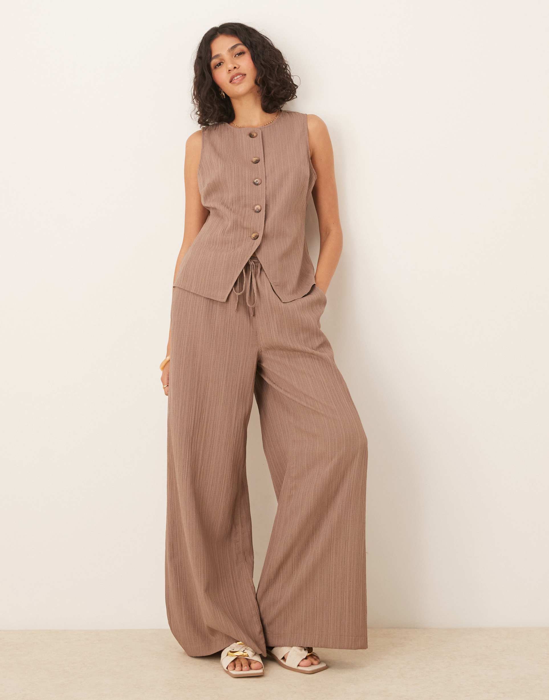 ASOS DESIGN CRINKLE PALAZZO PANTS IN TAUPE - PART OF A SET