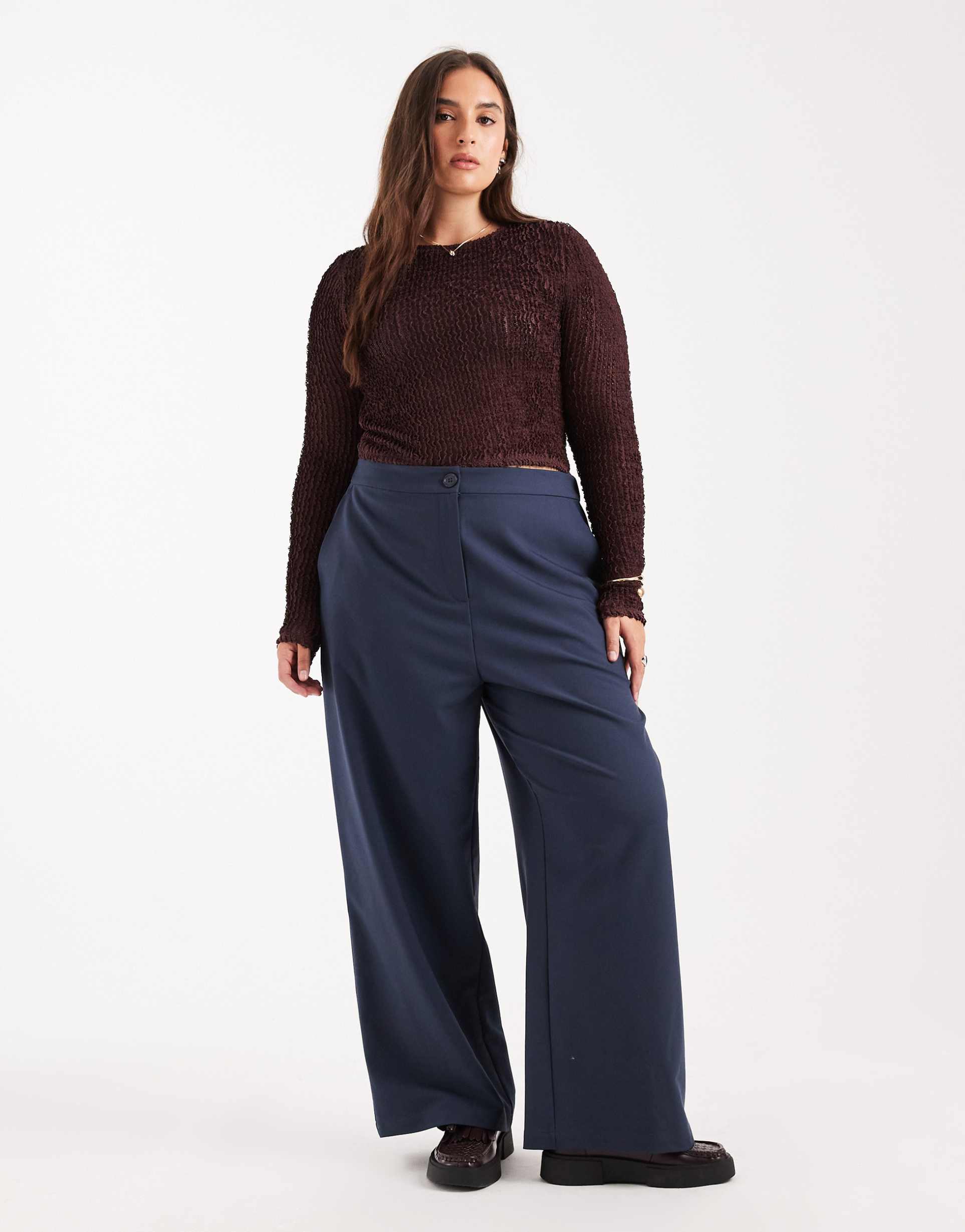 ASOS DESIGN CURVE TAILORED RELAXED STRAIGHT LEG PANTS IN NAVY