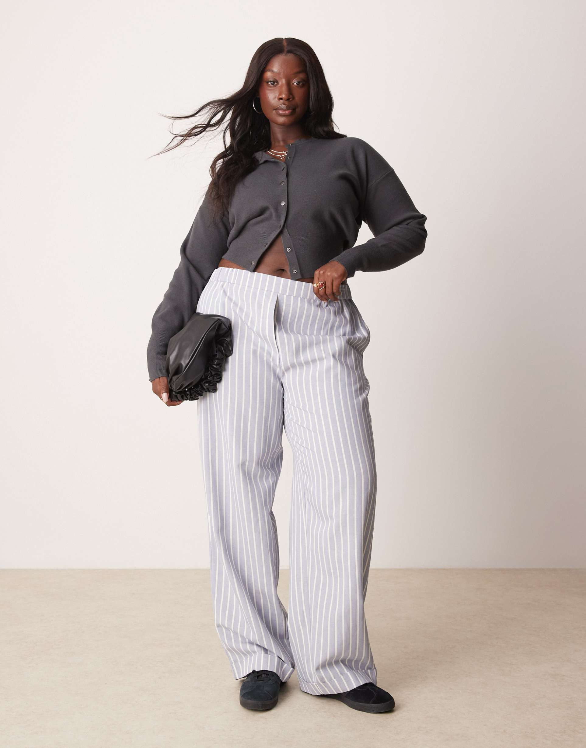 ASOS DESIGN CURVE TAILORED STRAIGHT LEG PANTS IN BLUE AND WHITE STRIPE